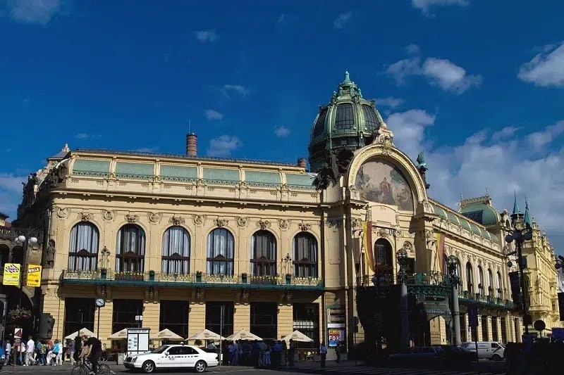 The Prague Municipal House (Obecní dum) is widely considered one of the finest examples of Art Nouveau in the city. Built in 1912, this splendid civic building is also home to one of Prague\’s most important (and largest) concert venues, Smetana Hall, and boasts numerous striking features, from its sumptuous façade with a large mural on the arch above the second floor balcony, to the large dome that rests behind and above the arch.